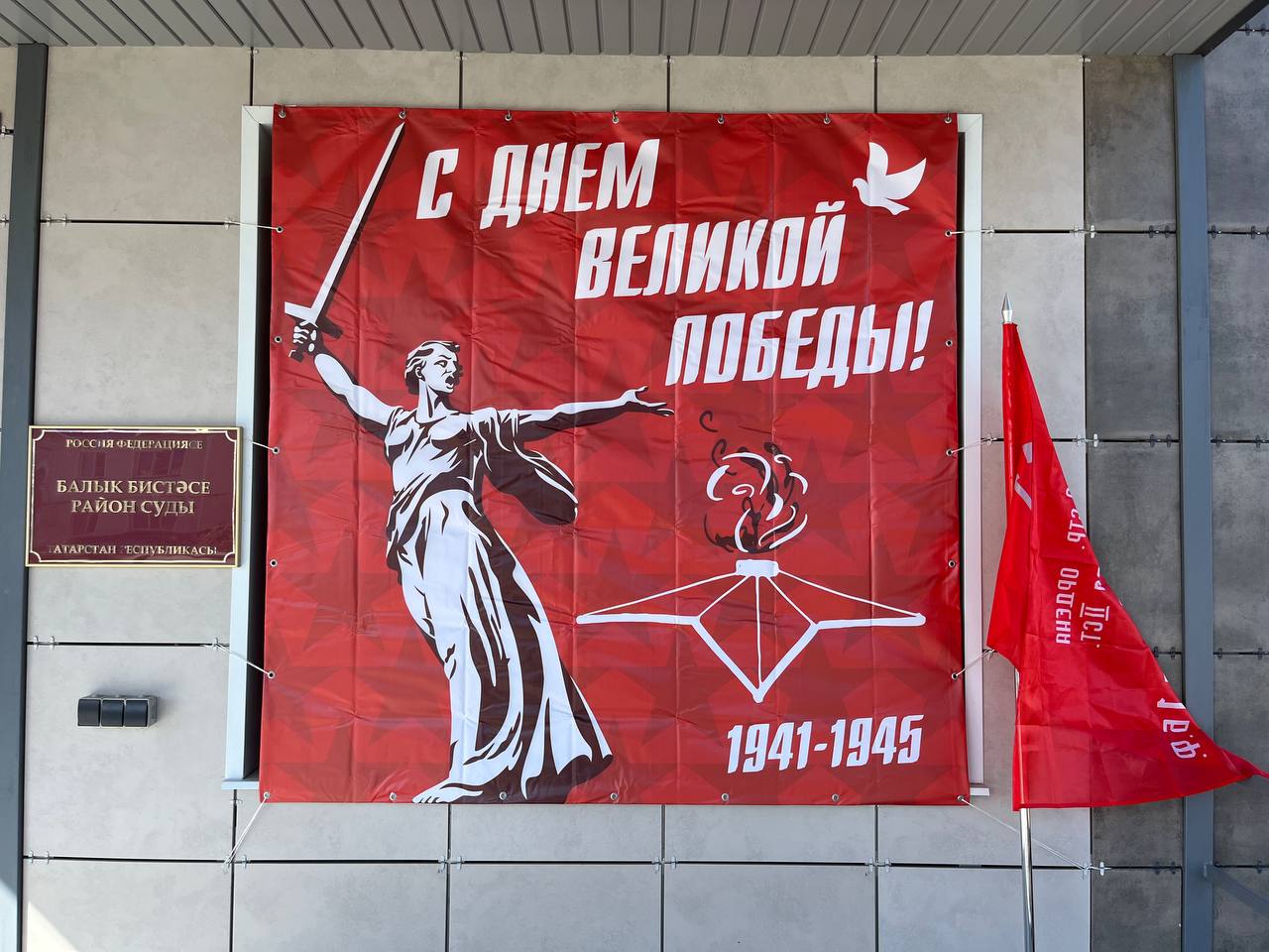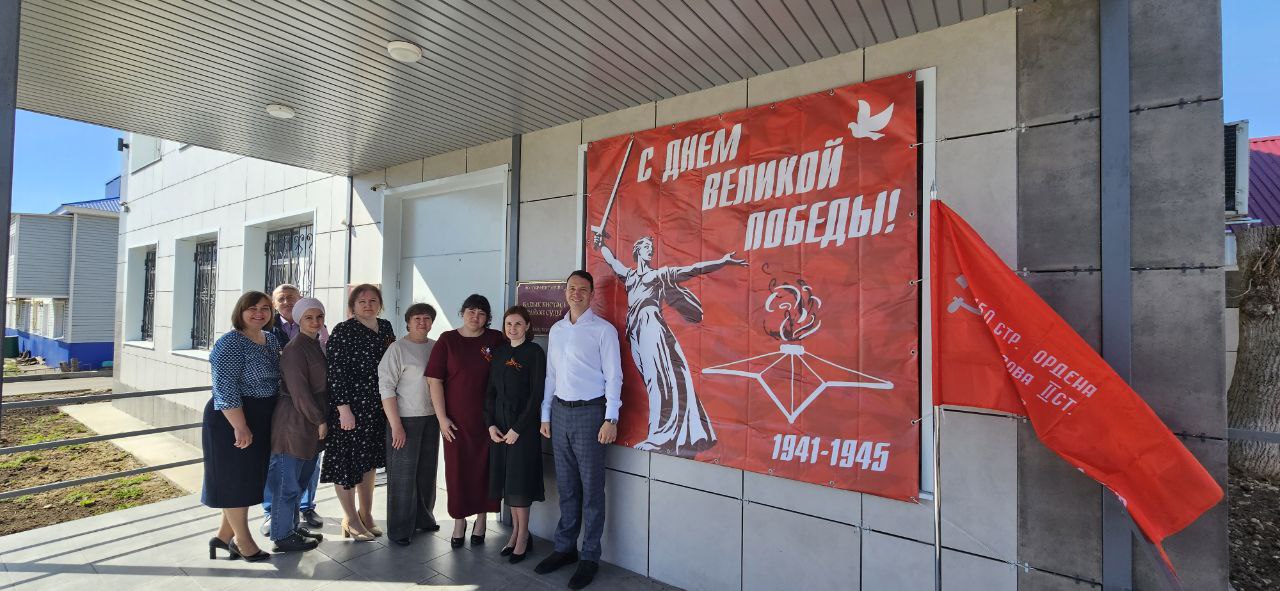 В преддверии празднования 80-летия Победы в Великой Отечественной войне входная группа Рыбно-Слободского районного суда преобразилась, наполнилась атмосферой торжественности и памяти. На фоне праздничного баннера развернулось Знамя Победы, которое было установлено 1 мая 1945 года над Рейхстагом в Берлине. С небольшим приветственным словом выступил председатель Рыбно-Слободского районного суда Рябин Е.Е., он напомнил о героизме наших предков, о сохранении памяти и значимости таких мероприятий для нравственного и духовного воспитания. Подчеркнул, что Знамя Победы стало одним из главных символов окончательной победы над нацизмом.