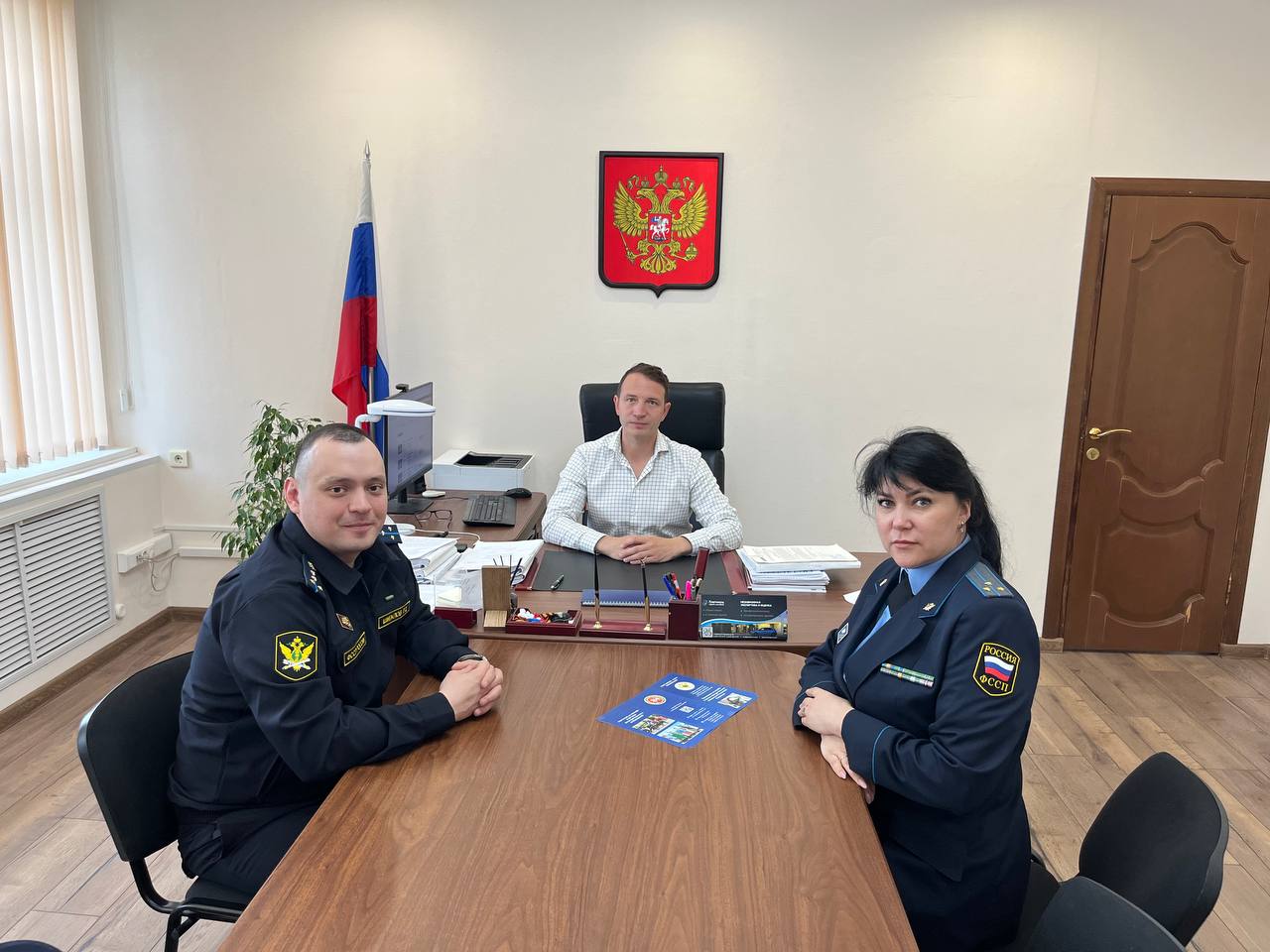22 мая 2025 года в Рыбно-Слободском районном суде прошла рабочая встреча председателя суда Рябина Е.Е. и заместителя руководителя Главного управления Федеральной службы судебных приставов по Республике Татарстан – заместителя главного судебного пристава Республики Татарстан Шигапова Р.Д. и Валеевой Г.Т. начальника отдела государственной службы и кадров Управления Федеральной службы судебных приставов по Республике Татарстан. На повестке дня стояли вопросы обеспечения безопасности судей, гражданских служащих и участников судопроизводства. Акцент сделан на надлежащем исполнении судебных решений и запросов, касающихся различных категорий дел, а также своевременности предоставления исполнительных производств в суд. Разобраны проблемные моменты, связанные с направлением исполнительных документов в электронном формате. Евгений Евгеньевич подчеркнул, что одним из ключевых направлений остается изменение подходов к автоматизации документооборота и внедрение новых технологий для улучшения взаимодействия между судебными приставами и судами. Участники встречи определили задачи для дальнейшего сотрудничества и выразили пожелание к плодотворной и слаженной работе. Пресс-центр «ДИАЛОГ» Рыбно-Слободского районного суда